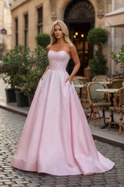 A-line Sweetheart Pink Tiered Strapless Prom Dress