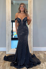 Fitted Black Beaded Prom Dress