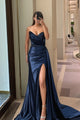 Mermaid Blue Satin Strapless Long Prom Dress With Beads