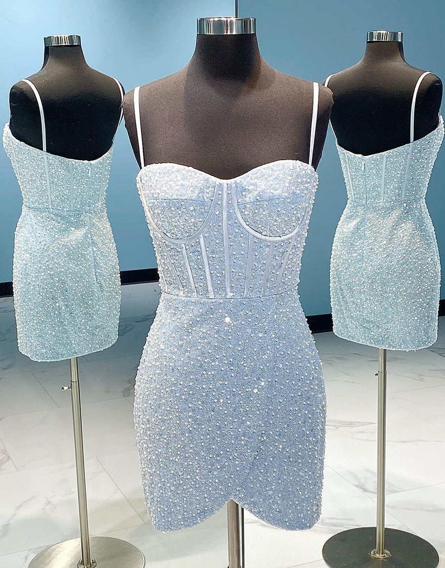 Sweetheart Light Blue Short Glitter Homecoming Dress