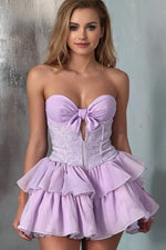 Lilac Cut Out Strapless Homecoming Dress