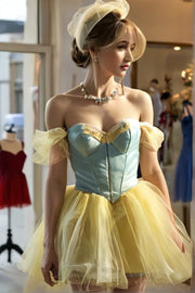 A line Pleated Tiered Off-shoulder Homecoming Dress