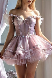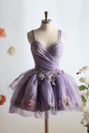 Tulle Cute Lilac Homecoming Dress with Appliques