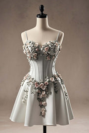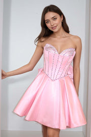 Strapless Sheer Corset Bodice Satin Homecoming Dress