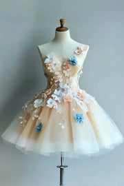 Strapless Tulle Flowers Homecoming Dress