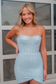 Strapless Beads Sheer Corset Bodice Homecoming Dress with Slit