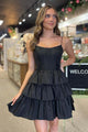 Strapless Tiered Tulle Homecoming Dress with Keyholes