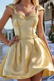 Yellow Satin Homecoming Dress With Beads