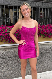 Fuchsia Strapless Bow Homecoming Dress