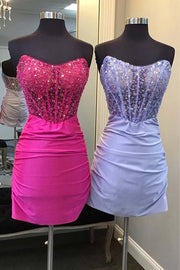 Sequin Strapless Homecoming Dress with Corset Bodice