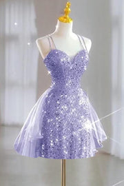 Sequin Tulle Glitter Lace Up Back Homecoming Dress