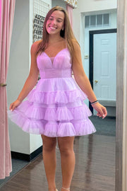 Strapless Tiered Tulle Homecoming Dress with Keyholes