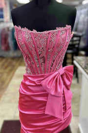 Strapless Beads Sheer Corset Bodice Homecoming Dress with Slit