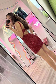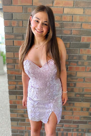 Sequin Side Slit Homecoming Dress with 3D Flowers