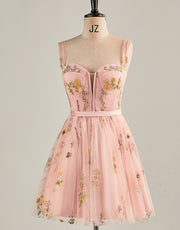 Pink Strapless Bubble Hem Homecoming Dress with Flowers