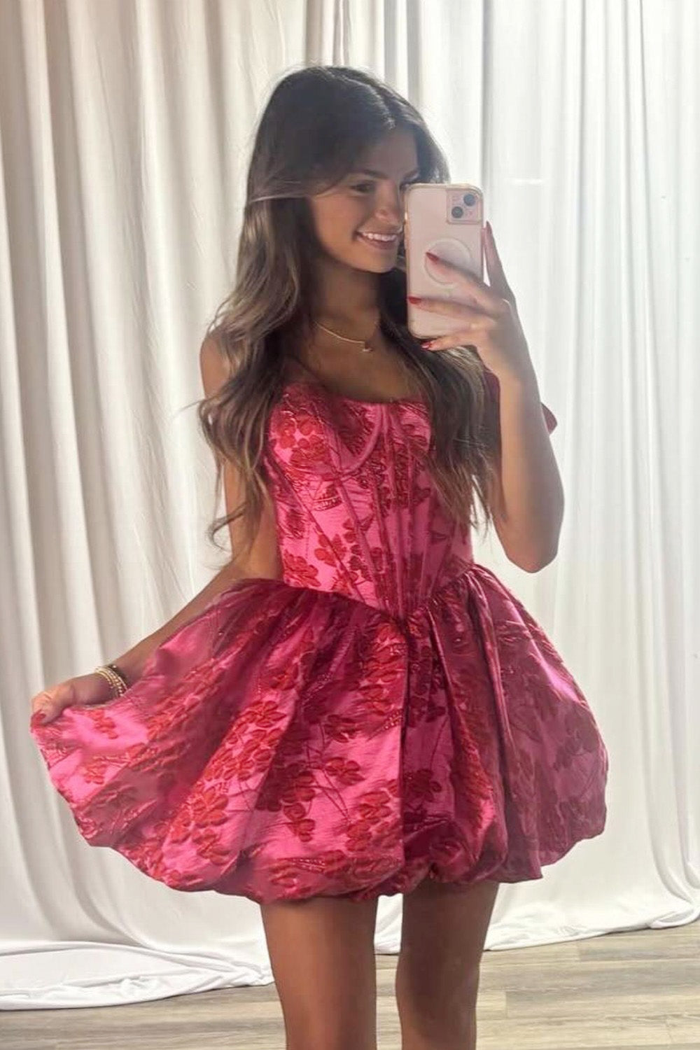 Pink Corset Floral Off the Shoulder Homecoming Dress