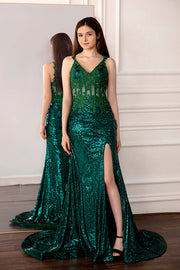Dark Green Slit Prom Dress with Sequin