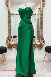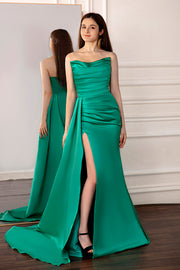 Strapless Sage Green Slit Prom Dress