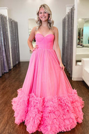 Strapless Tulle Pink Prom Dress with Ruffle Hem