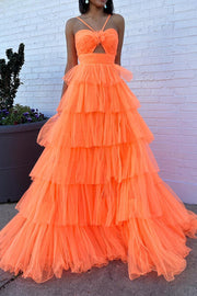 Orange Tiered Cute Prom Dress