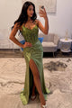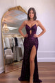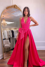 Glitter Beaded A-line Hot Pink Long Prom Dress With High Slit