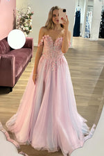 Off Shoulder Pink Prom Dress With Appliques
