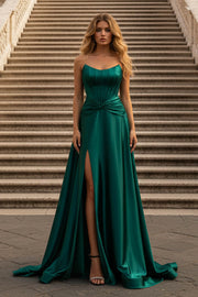 Strapless Dark Green Prom Dress with Slit