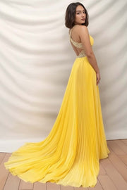 Halter Split Long Straps Beaded Long Prom Dress With Bow