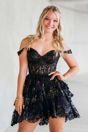 Ruffle Sheer Corset Bodice Homecoming Dress with Sequin