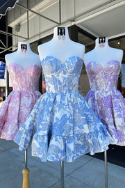 Jacquard Corset Homecoming Dress with Ruffle Hem