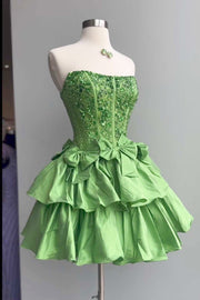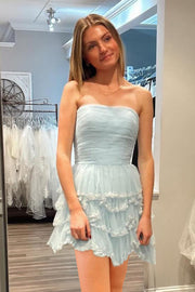 Strapless Tiered Tulle Homecoming Dress with Keyholes