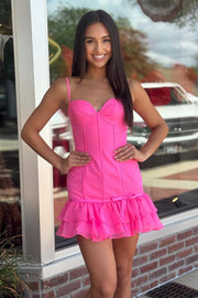 Sheer Corset Bodice Ruffle Homecoming Dress with Sequin