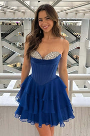 Strapless Corset Homecoming Dress with Chiffon Skirt