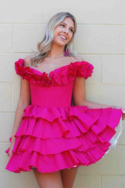 Off the Shoulder Ruffle Cute Homecoming Dress