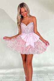 Tulle Strapless Homecoming Dress with Keyholes Flowers