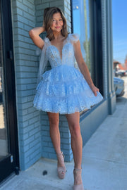 One Shoulder Tiered Homecoming Dress with Keyhole