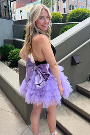 Lilac Tiered Strapless Homecoming Dress with Embroidery