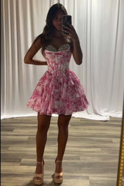 Sweetheart Pink Floral Homecoming Dress with Beads