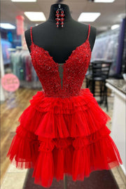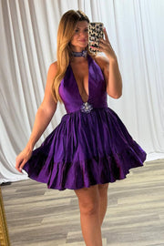 Halter Ruffle Tiered Homecoming Dress with Appliques