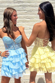 Strapless Ruffle Cute Homecoming Dress with Sheer Corset Bodice