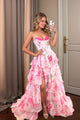 Pink Sheer Bodice Ruffles Long Prom Dress With Slit