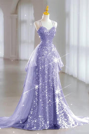 Sequin Tulle Glitter Lace Up Back Prom Dress