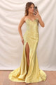 Yellow Open Back Appliques Prom Dress