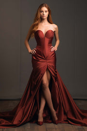 Burgundy Sweetheart Prom Dress with Slit