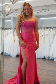Strapless Satin Corset Prom Dress with Chiffon Ruffle Skirt