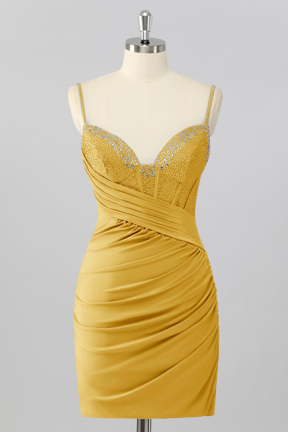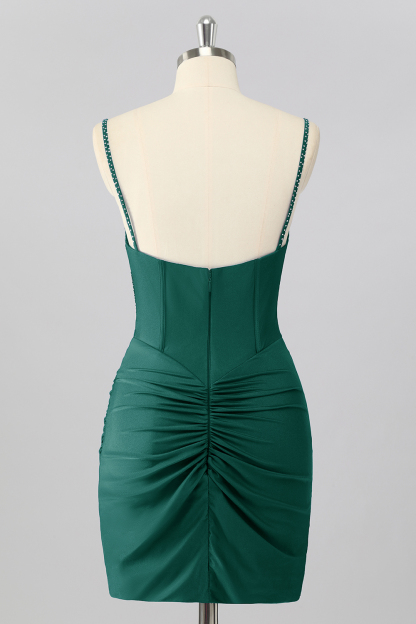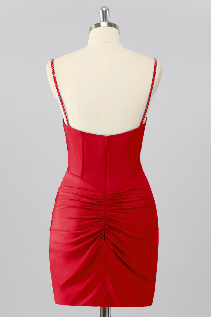 Featured: Step into the spotlight with this blush pink mini dress that’s bold, flirty, and unforgettable. The fitted bodycon silhouette hugs your curves, while the ruched detailing creates a flattering, sculpted look. Sparkling rhinestones embellish the deep V neckline and structured bodice, adding eye-catching shine that catches the light with every move. With adjustable spaghetti straps and a sleek, streamlined hem, this dress is made for nights when all eyes are on you.